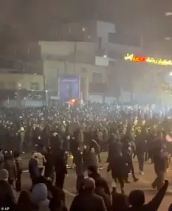 Videos shared on social media show thousands of Iranians in Tehran’s Kaj Square chanting slogans like ‘death to the dictator’ and ‘death to Khamenei,’ their voices rising in defiance of a regime that has long suppressed dissent.