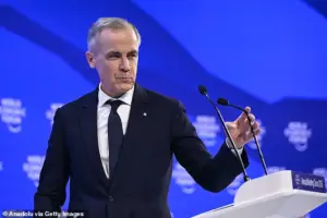 The revelations come as Trump and the Canadian Prime Minister Mark Carney (pictured) both attend the World Economic Forum in the Swiss ski resort of Davos this week.