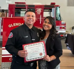 His career included responding to the deadly Palisades Fire in January 2025, an event he celebrated by posing for a photo with his firefighter certificate next to his wife.